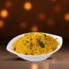 The white rice is cooked to a soft, fluffy texture, then sautéed with a blend of fragrant spices like mustard seeds, cumin, turmeric, and curry leaves, creating a warm, inviting aroma. A touch of onions, garlic, and sometimes ginger adds depth to the flavor profile, while fresh chilies (green or dried) provide a mild to moderate heat. The dish is often finished off with a tangy element—such as tamarind, lemon, or yogurt—to balance the richness of the spices and bring out a pleasant contrast of flavors.